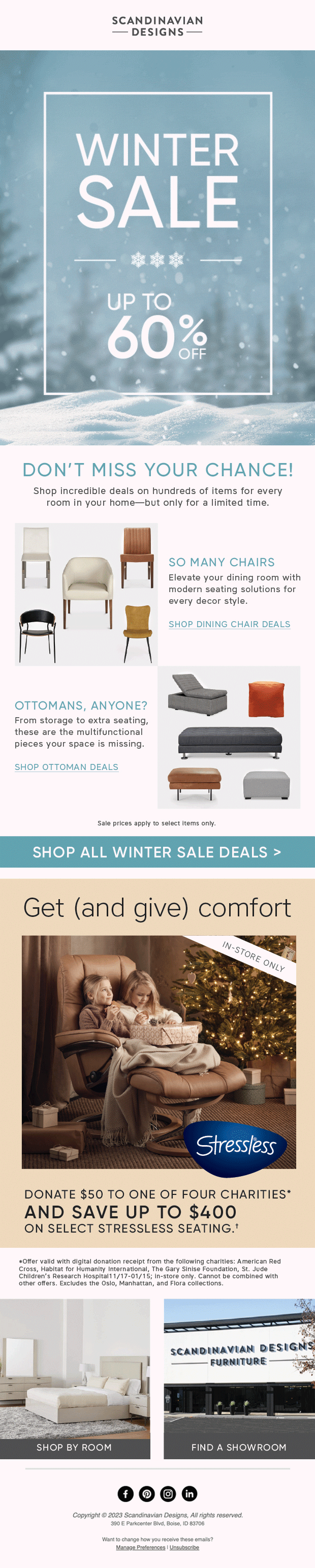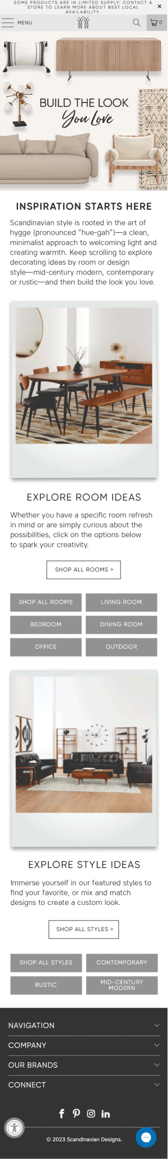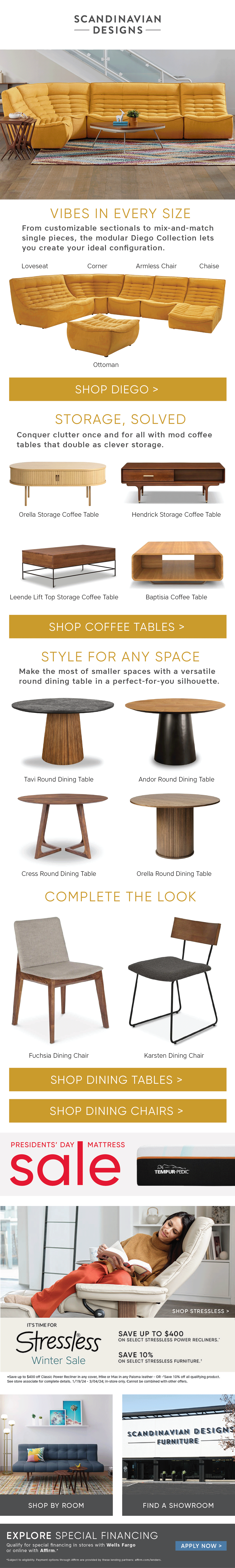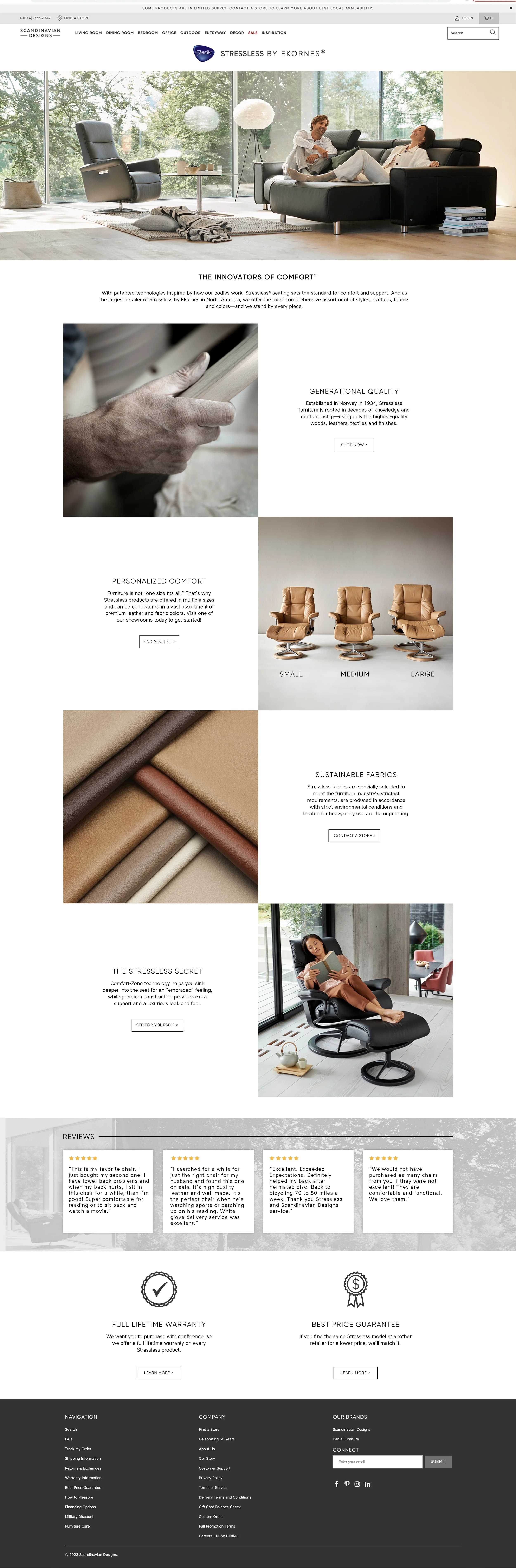 I redesigned the landing page for the Stressless® line which is a luxury brand that Scandinavian Designs is a top seller for. The previous landing page hadn’t been touched in years and was very outdated in both look and function with several broken links.
